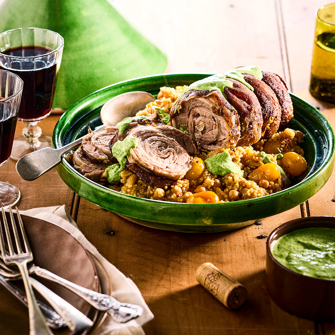 Lamb belly needs a long, slow cook to render out the fat and make the meat tender. This one-pan version is very low maintenance and full of warming Moroccan flavours, perfect for winter entertaining.